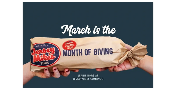 For the last F15 years, Jersey Mike's has been giving back! Their "Month of Giving philanthropic program raises money for local charities around the country. Each year, throughout the month of March, Jersey Mike's gives its customers the opportunity to round up, donate a $1, $3, $5, or an amount of their choice to the charity selected in their local area. And, on their "Day of Giving" (this year it was March 26th), ALL SALES (not profit, but all revenue) from that day go to the selected charity.